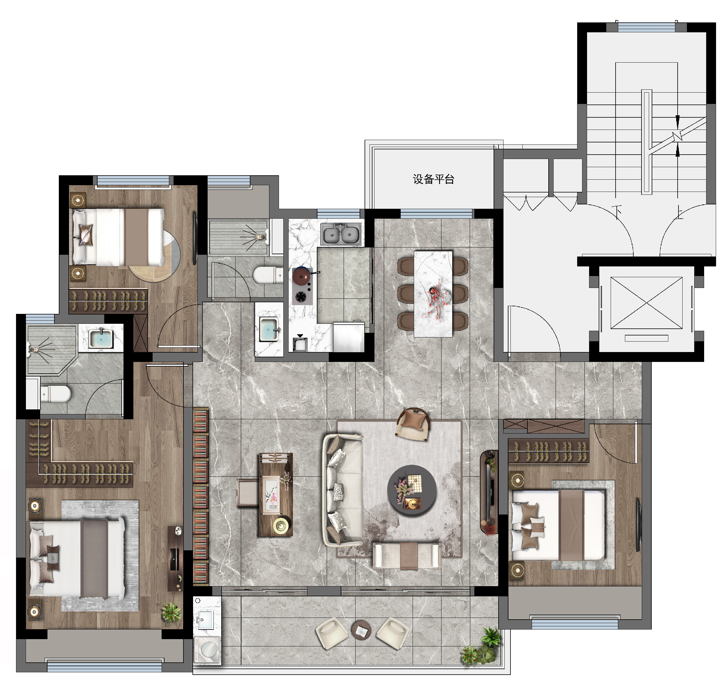 尊崇入户 | 专属梯厅,独立玄关,礼序有秩,彰显主人修养 四域阳光 | 四开间朝南,约14.4m阔绰面宽,约3.1m奢阔层高 南北通透 | 方正户型,南北通透设计,清风暖阳自对流 巨幕阳台 | 约7.2m双联宽景阳台,一揽广域阳光与风景 私域空间 | 约3.9米面宽主卧套房,双衣帽间设计,演绎奢雅